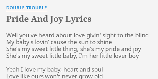 E Stick with her until the end of time Asus4 A7 E An Shes my sweet little thang shes my pride and joy B7 A7 E Shes my sweet little baby Im her little lover boy Verse 5 B7 E Yeah I love my baby heart and soul E Love like ours wont never grow old A7 E Shes my sweet little thing shes my pride and joy B7 A7 E Shes my sweet little. Pride And Joy Lyrics.
